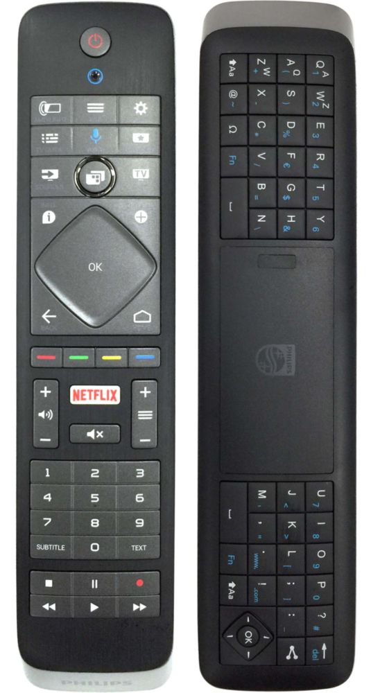 - Fernbedienung mit QWERTY-Tastatur, Swipe Pad und Spracherkennung