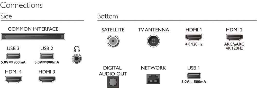 Philips TV 2023: OLED8x8 Anschlüsse