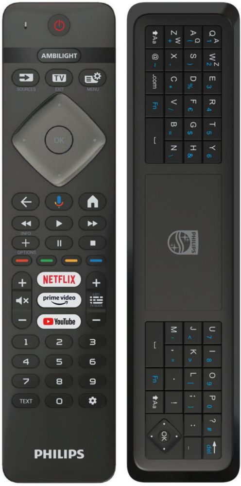 - schnelle Einstellmöglichkeit für Bild, Ton und Ambilight