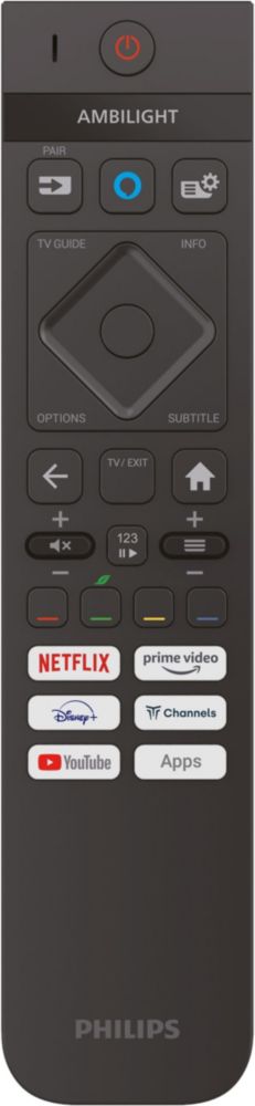 - schnelle Einstellmöglichkeit für Bild, Ton und Ambilight