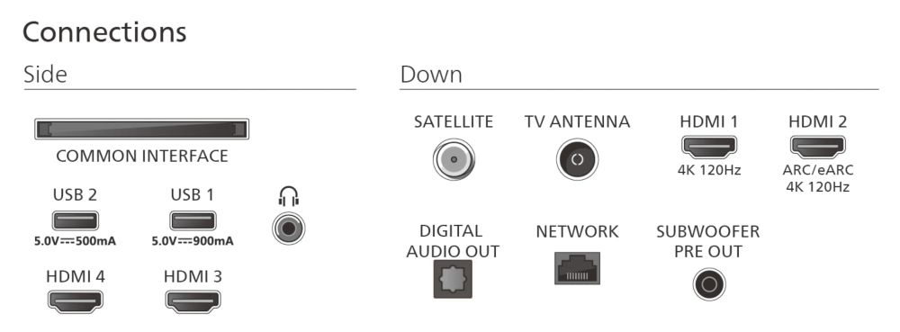 - HDMI 2.1: HDMI-1/-2 (volle Bandbreite 48 Gbit/s)