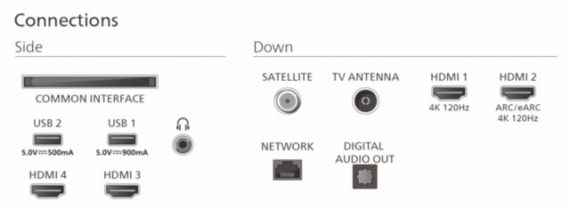 - HDMI 2.1: HDMI-1/-2 (volle Bandbreite 48 Gbit/s)
